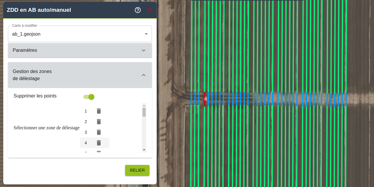 ZDDs can be deleted from the Management of load-shedding zones section. This can be done in two different ways, depending on the value of the Delete points parameter: