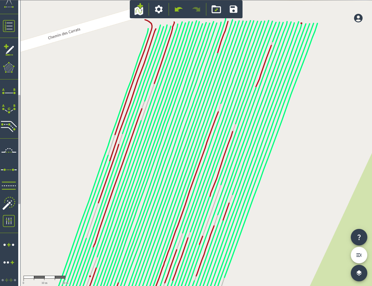 - Red : represents points recorded without RTK. The accuracy is not sufficient to consider these points as valid.