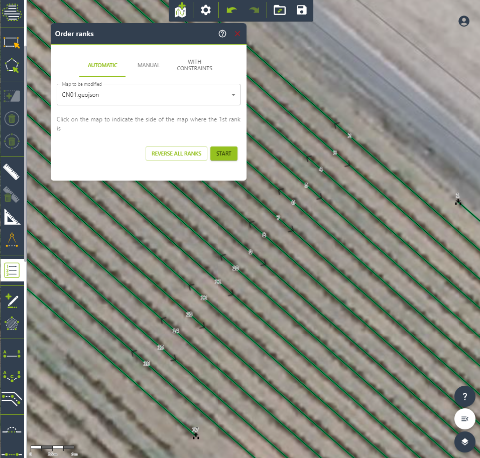 Caution: This option must be used before exporting the map to ensure correct rank chaining. Several EasyMapping options can alter this sequence (deleting or adding rows, splitting a row into several rows, etc.), so it is strongly recommended to use this option at the end of map processing.