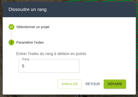 - Sélectionner l’index du rang à dissoudre