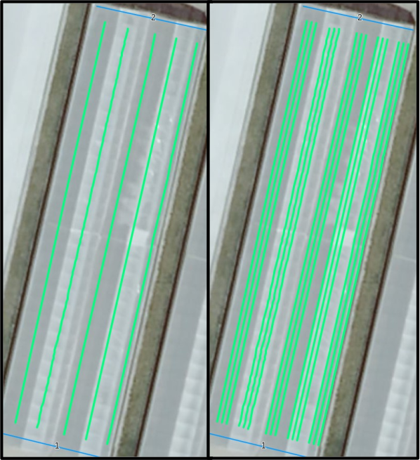 - Si le nombre de rangs est pair, les rangs seront extrapolés autour de la trace originelle (d’une demi-distance de chaque côté de la trace donc)