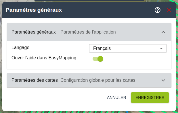 - Permet de choisir le mode d'ouverture de l'aide intégrée : dans un nouvel onglet / dans une fenêtre intégrée dans Easymapping