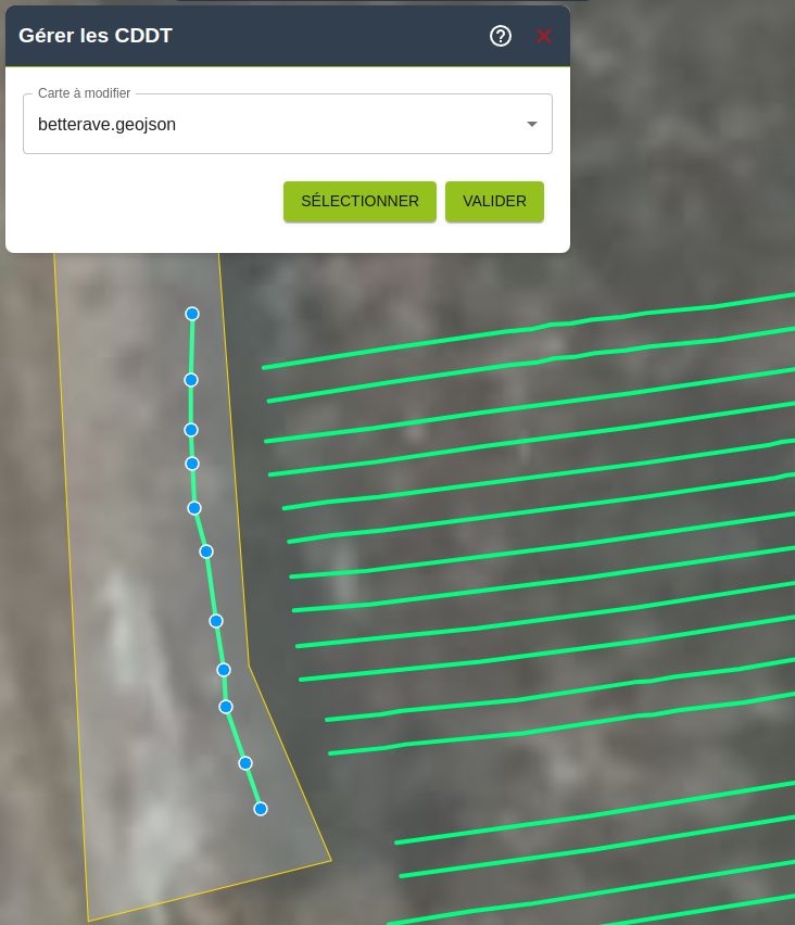 - Il est possible d’en sélectionner un (ou plusieurs) CDDT en cliquant sur SÉLECTIONNER puis de l’ajouter à la carte en cliquant sur VALIDER